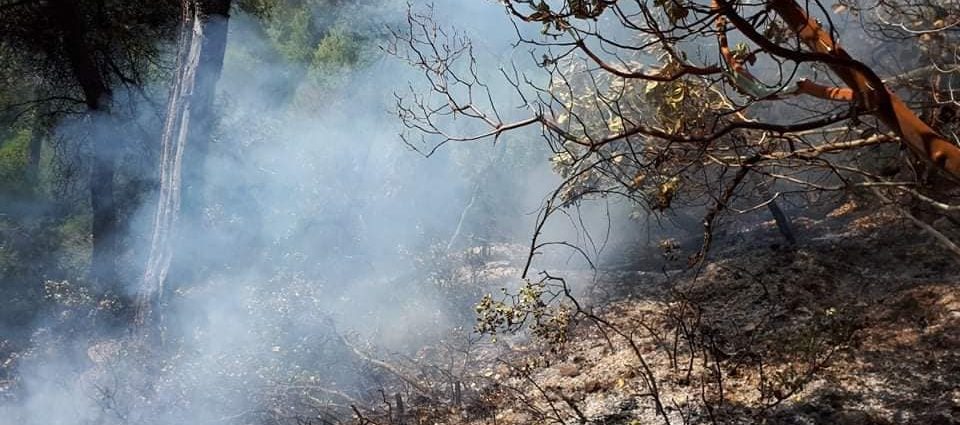 Πυρκαγιά ξέσπασε το πρωί της Τετάρτης 19 Ιουνίου 2019 σε δύσβατη δασώδη περιοχή έκτασης περίπου πέντε στρεμμάτων μετά από κεραυνό.