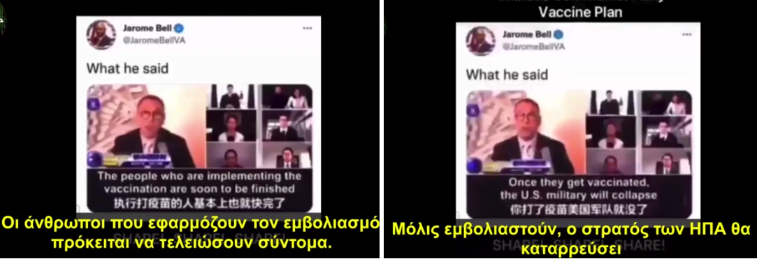 Διαροή εγινε απο τηλεδιάσκεψη στην Κίνα. Αφεντικά από το Κομμουνιστικό Κόμμα Κίνας (CCP) καταγράφονται στη κάμερα συζητούν το μέλλον των Ηνωμένων Πολιτειών μετά τη διανομή του εμβολίου: «Όλοι όσοι έκαναν το εμβόλιο Θα τελειώσουν” λένε. «Οι άνθρωποι που εφαρμόζουν τον εμβολιασμό πρόκειται να τελειώσουν σύντομα.
