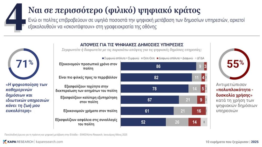 Ενώ οι πολίτες επιβραβεύουν σε υψηλά ποσοστά την ψηφιακή μετάβαση των δημόσιων υπηρεσιών, αρκετοί εξακολουθούν να «σκοντάφτουν» στη γραφειοκρατία της οθόνης.